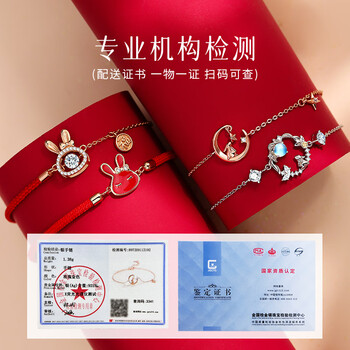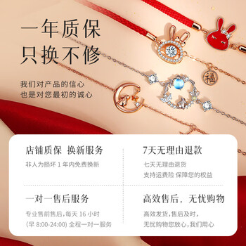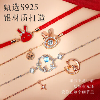 曼禾S925银手链女士款生肖兔子红绳手串首饰本命年生日礼物送女生朋友