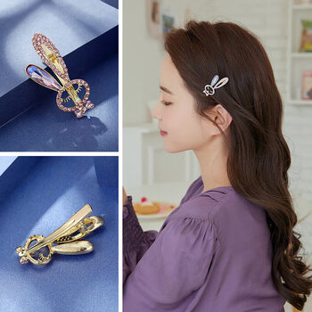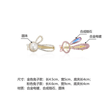 奇美拉(CHIMERA)2件可爱减龄水钻一字夹兔子边夹顶夹发饰发卡女生日礼物