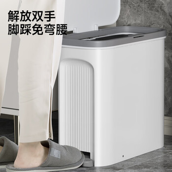 五月花双开盖多功能垃圾桶14L手按脚踏卫生间夹缝垃圾桶家用