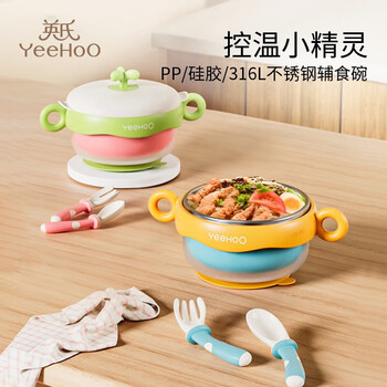 英氏(YEEHOO)宝宝辅食碗婴儿注水保温碗不锈钢儿童餐具吸盘碗 公主粉-三件套