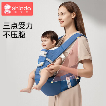 新安代婴儿背带腰凳前后坐凳 抱娃神器四季多功能背带 护颈可横抱安妮粉
