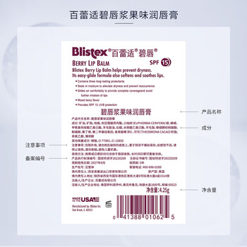 百蕾适浆果味防晒润唇膏SPF15 清香莹润 防晒保湿1支4.25