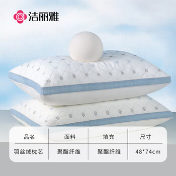 洁丽雅(Grace)枕头枕芯星级酒店羽丝绒枕芯可水洗枕 纤维软枕芯 一对装 48*74cm