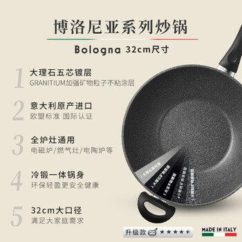 巴拉利尼(BALLARINI)不粘锅进口电磁炉燃气通用少油烟炒菜锅大口径炒锅博洛尼亚32cm