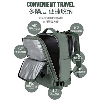 Landcase背包旅行包女大容量双肩包电脑包短途出差旅游行李包 1637森林绿