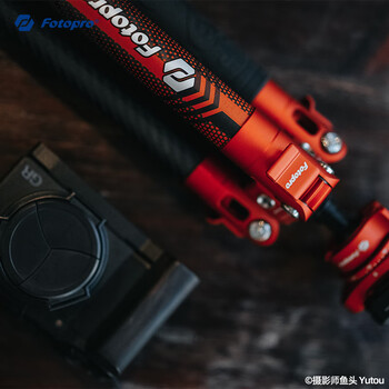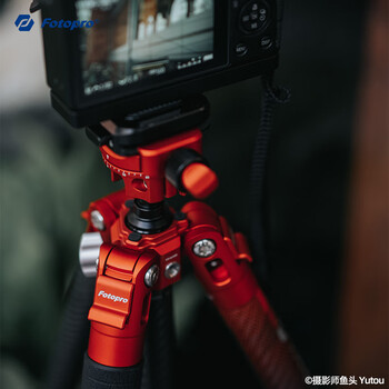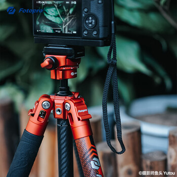 富图宝(Fotopro)空气三号lite 全景云台碳纤维相机微单摄影摄像三脚支架 火焰橙 重/0.8KG 手机夹