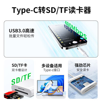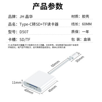 晶华Type-c读卡器 USB-c多功能SD/TF二合一 OTG手机电脑单反平板相机行车记录仪监控存储卡内存卡 D507