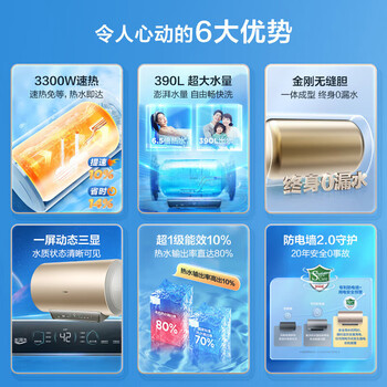 海尔(Haier)【JH3】60升电热水器 3.3KW速热增容大水量金刚无缝胆 水质可视 WiFi智控 一级能效 EC6001-JH3U1*
