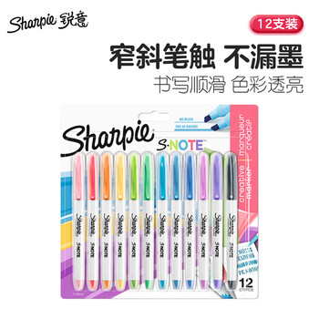 锐意(Sharpie)创意彩色水性马克笔记号笔重点标记防褪色速干学生绘画涂色DIY进口窄斜笔头12色装美术写生水彩笔