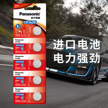 松下(Panasonic)CR1620进口纽扣电池电子3V适用马自达世嘉标致汽车钥匙遥控器CR1620 五粒