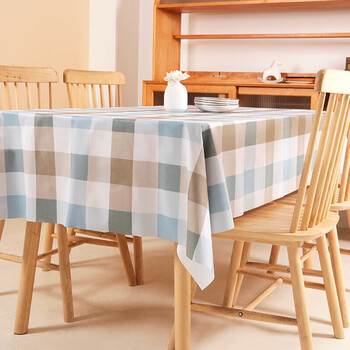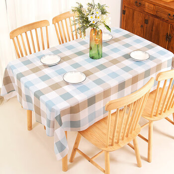 钟爱一生桌布防水防油免洗PVC加厚正方形餐桌茶几台布 蓝咖大格137*137cm