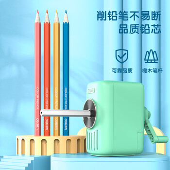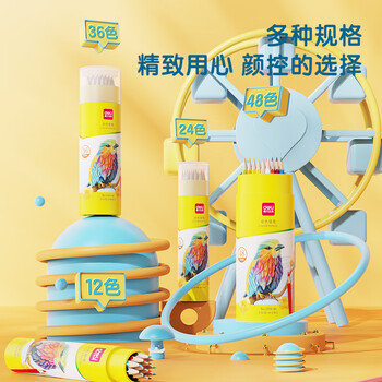得力(deli)24色油性彩铅原木六角杆彩色铅笔学生绘画涂色艺术写生手绘儿童画笔筒装女孩儿童礼物HM455-24彩笔