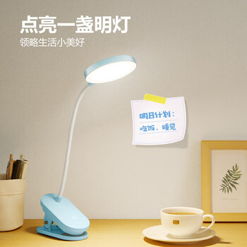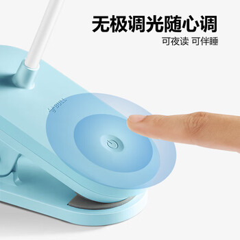 公牛(BULL)A级照度ML-D005C-DS充插两用无极调光宿舍家用夹子台灯蓝色4000K