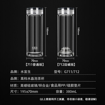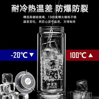 水宜生玻璃杯双层隔热泡茶杯男女士高档商务办公杯水晶杯耐高温380ML