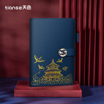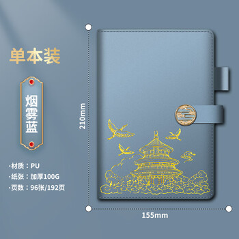 天色 A5/96张故宫国风笔记本子高颜值 复古记事本 新年礼物日记本会议本教师节礼物年会礼品 TS-4165 烟雾蓝