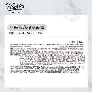 科颜氏(Kiehl's)高保湿水250ml+面霜50ml护肤品补水保湿 生日礼物男女