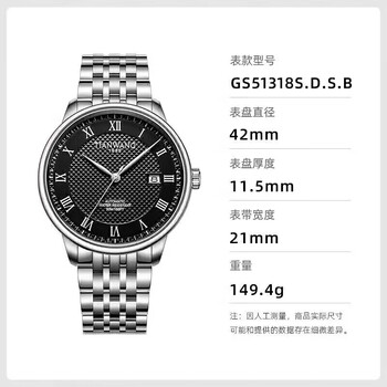 天王(TIAN WANG)男士手表 自动机械表钢带防水腕表生日礼物GS51318S.D.S.B