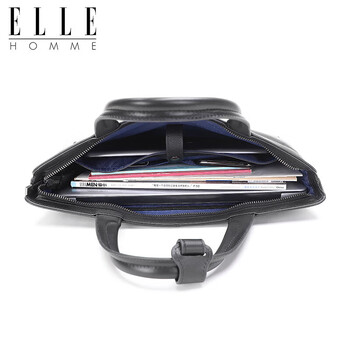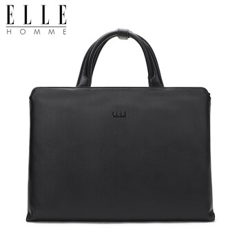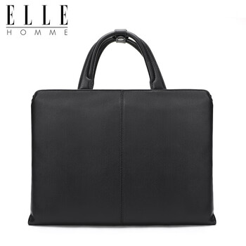 ELLE HOMME 男士商务公文包时尚轻薄真皮手提包 横款潮流简约牛皮男包EA088204210黑色