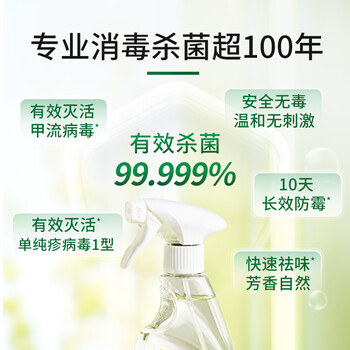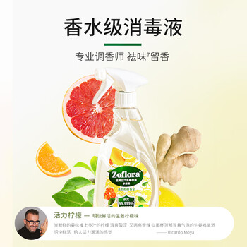 祖芙拉香氛消毒液喷雾活力柠檬500ml杀菌袪味0酒精无刺激甲流感家庭清洁