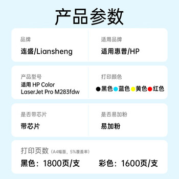 连盛适用 惠普m283fdw硒鼓HP Color LaserJet Pro M283fdw彩色激光打印机硒鼓墨粉盒 黑色 带芯片 易加粉
