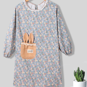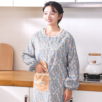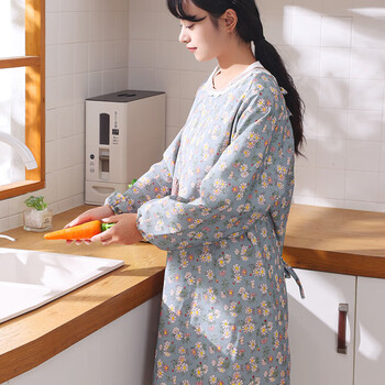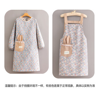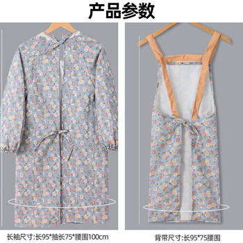 迪普尔围裙两件套公主连袖厨房围裙做饭防油长袖围腰棉质围兜成人罩衣