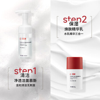 珂岸华熙生物补水保湿素颜套组男士护肤套装100ml洁面慕斯+50g精华乳
