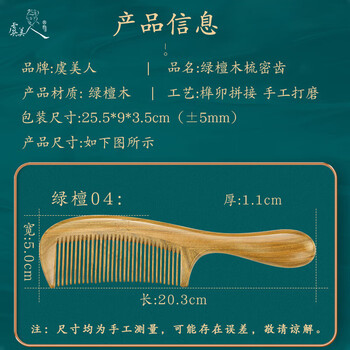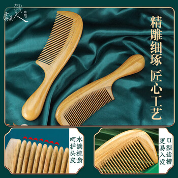 虞美人梳子生日礼物按摩梳绿檀木梳加大加厚绿檀04礼盒
