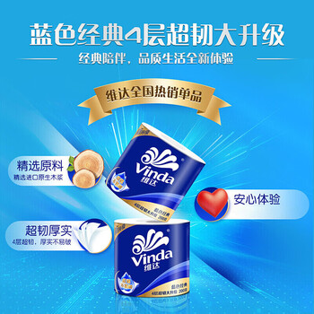 维达有芯卷纸4层200g60卷纸巾整袋销售V4073