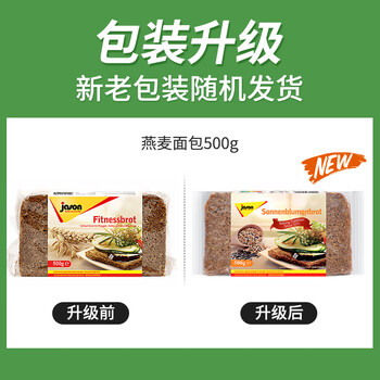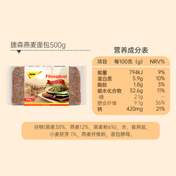 捷森德国进口 燕麦黑面包500g/袋 0糖0反式 全麦粗粮低脂健身代餐