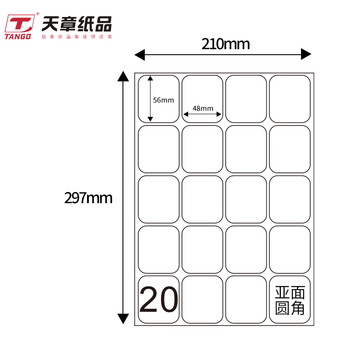 天章 (TANGO)A4不干胶打印纸 背胶纸可粘贴标签纸贴纸不粘胶姓名贴 黄底哑面圆角20枚/张(48*56mm) 80张/盒
