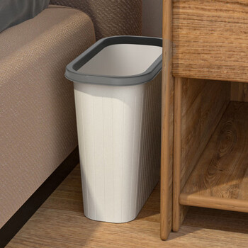 本迪压圈垃圾桶11L卫生间窄缝米色塑料垃圾篓家用办公室纸篓垃圾桶