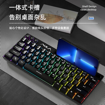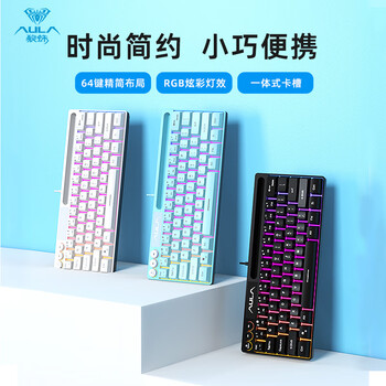 狼蛛(AULA)F3061机械手感键盘 有线mini小键盘 RGB背光键盘 台式电脑笔记本游戏键盘 白色炫彩光