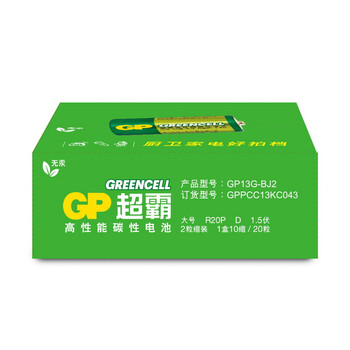 超霸(GP)1号大号电池20粒碳性干电池适用于燃气灶/手电筒/热水器/手电筒等R20P 商超同款