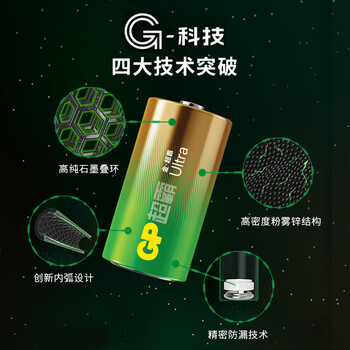 超霸(GP)2号电池2粒碱性中号电池适用于收音机/手电筒/玩具电池/热水器等