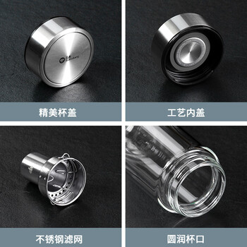 万象(WANXIANG)双层玻璃杯V304R钛银色480ML大容量泡茶杯商务办公带滤网水杯