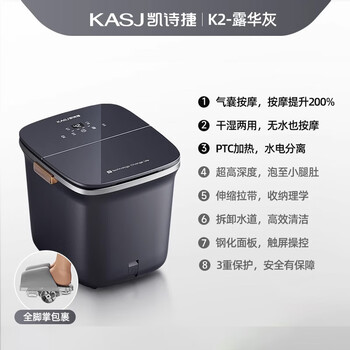 凯诗捷(KASJ)足浴盆 电动按摩泡脚桶 气囊按摩 乾湿两用 恒温家用洗脚盆 K2 露华灰