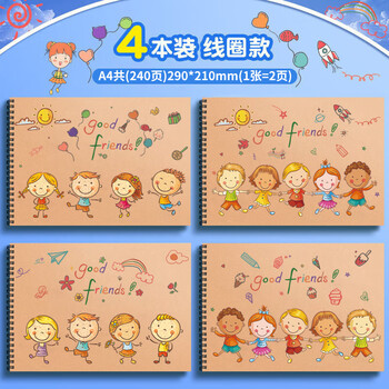 离草A4儿童画画本图画本绘画本 美术手绘涂鸦本幼儿园小学生专用加厚线圈画本 4本装240页