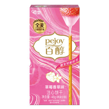 格力高(glico)百醇系列 草莓香草味48g*1盒 注心饼干休闲零食下午茶
