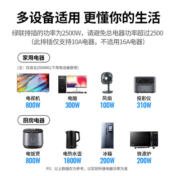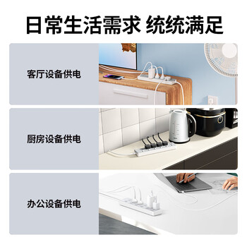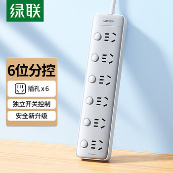 绿联插排/插座/插线板/排插/插板/拖线板/接线板/桌面带线宿舍家用6位分控独立开关全长2米
