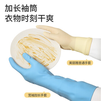 美丽雅洗碗手套加长38cm均码宽袖家务洗衣服厨房清洁乳胶橡胶加厚耐用