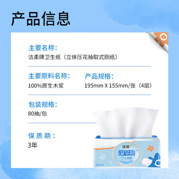 洁柔抽取式厕纸4层80抽卫生纸*24包 代替卷纸