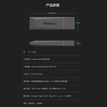 ThinkPlus联想(thinkplus)1TB USB3.2高速传输U盘 大容量移动闪存优盘金属便携U盘 车载电脑办公多用TU800
