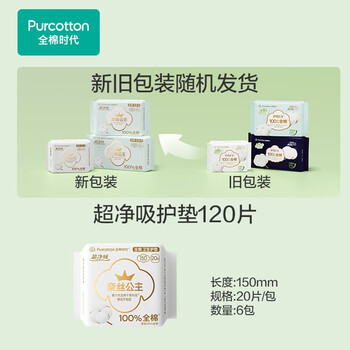 全棉时代(Purcotton)奈丝公主超净吸系列亲肤超薄护垫150MM,20片/盒*6盒