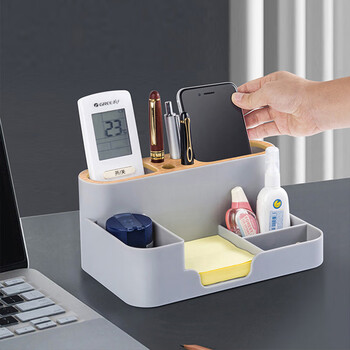 【开学必备】金隆兴 多功能十格组合笔筒 办公桌面文具收纳盒摆件高颜值创意ins风笔简约大容量遥控器收纳盒 6253 白色