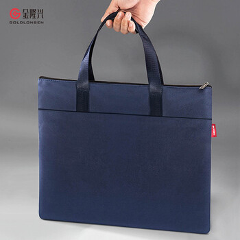 金隆兴 A4办公手提会议 加厚大容量商务拉链袋电脑公文包 帆布商务事务包档案袋防水耐磨 6591蓝色