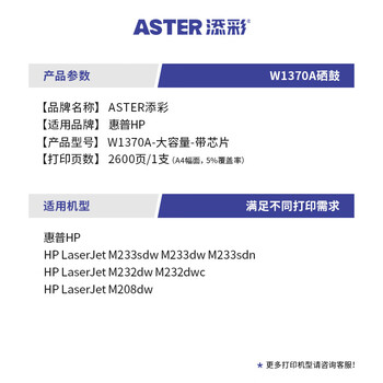 添彩w1370a硒鼓 适用惠普232dw硒鼓137a带芯片hp m233sdw m233dw m208dw m232dwc m233sdn打印机墨盒
