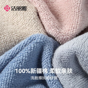 洁丽雅7A抗菌防螨纯棉毛巾3条装新疆长绒柔软吸水男女士擦洗脸家用洗澡