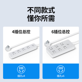 绿联插排/插线板/排插/插座/插板/拖线板/学生宿舍家用桌面带线新国标大间距6位总控全长2米