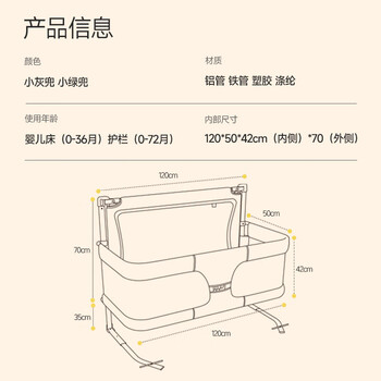 leeoeevee鹿儿婴儿床中床拼接可折叠新生儿宝宝床牢易安装防护栏防压米亚白