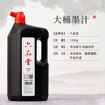 六品堂1200g大容量墨汁 书法专用大桶油烟墨书写春联对联毛笔字书画墨热门商品